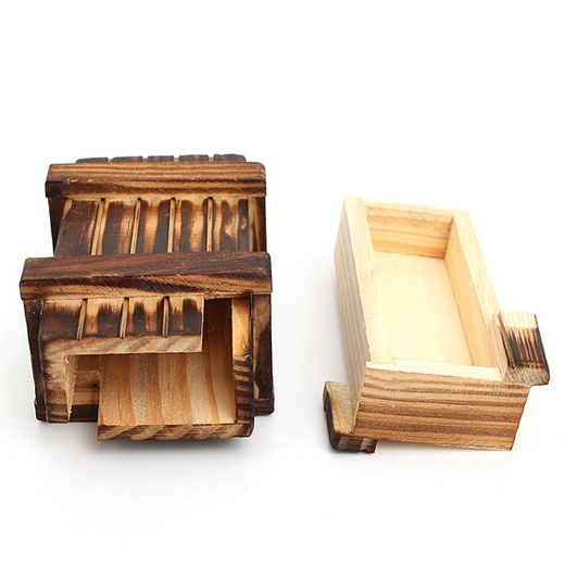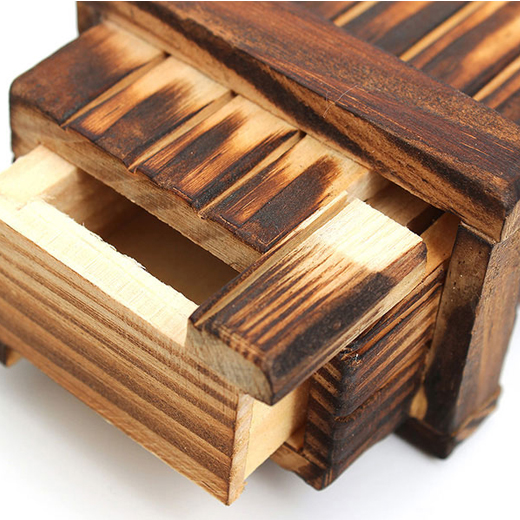 Это интересный экземпляр – шкатулка с секретом. Чтобы её открыть потребуется подумать и сообразить каким образом можно достать содержимое этого внешне простого ящика.