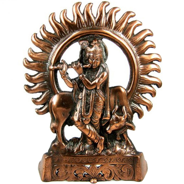 Описание статуэтка Кришна и коровка, 27 см силумин