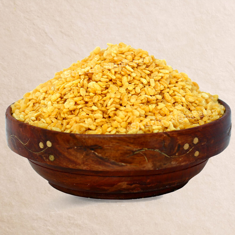 Индийская пряная закуска "Мунг дал" - хрустящий жареный в масле с солью жёлтый маш. Источник ценного растительного белка и полезный перекус.