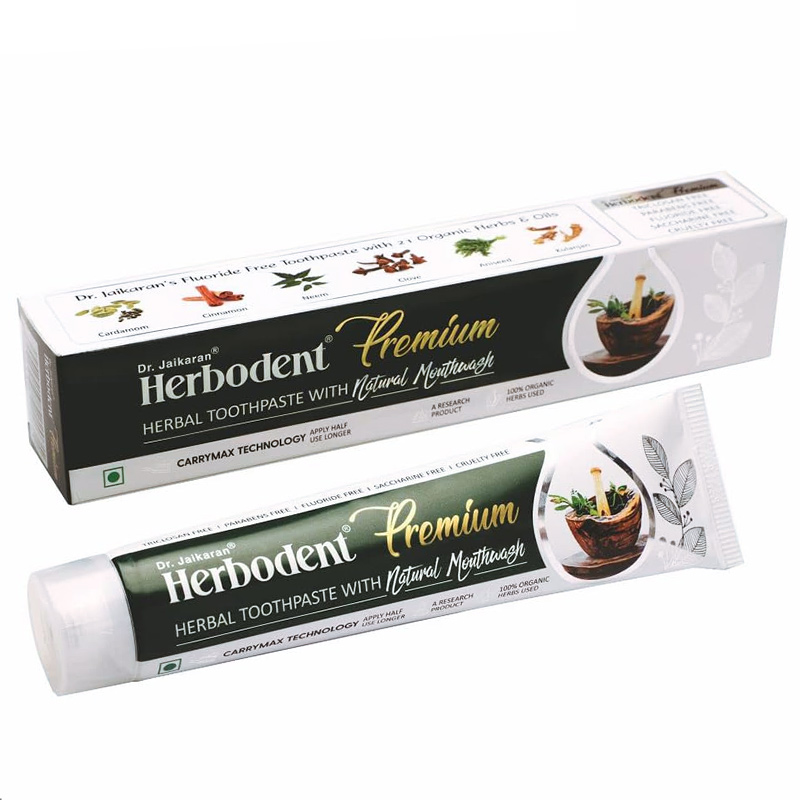 Herbodent высококачественная травяная зубная паста "Herbodent Premium" является флагманским продуктом Dr. Jaikaran и была высоко оценена нашими уважаемыми клиентами во всем мире. Признательность за "«Хербодент Премиум" исходит из того факта, что бренд действует как идеальный защитник от таких проблем с зубами, как кровоточивость десен, полость, чувствительность и пиорея, и доказал свою эффективность в борьбе с микробами-зубами.